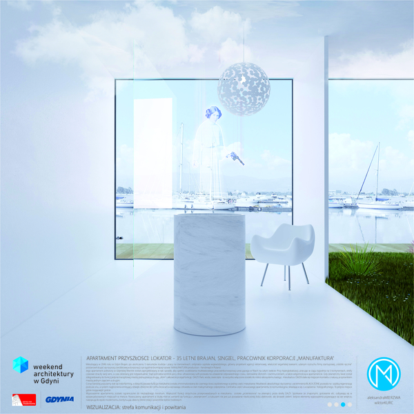 Jego apartament położony w Gdyńskiej Marinie został zaprojektowany w taki sposób, aby spełnić oczekiwania multitaskowego pracownika korporacji pracującego w filiach na całym świecie. Przy hiperglobalizacji, pracując w ciągu tygodnia na 5 kontynentach, strefy czasowe straciły swój sens, a czas określany jest indywidualnie. Stąd potrzeba kontroli pory dnia: ultrasonowy sufit pozwala na ustawienie odpowiedniego czasu, sterowanie słońcem i zachmurzeniem, a także wilgotnością w apartamencie. Gdy zewnętrzny świat został zdegradowany do funkcji jedynie tranzytowej miedzy jedną pracą a drugą, „dom” całkowicie przejął funkcję OAZY. Park, woda, zwierzęta - to wszystko włączone zostało do mikro-ekosystemu każdego mieszkańca. OAZA stała się miejscem kontaktu z naturą, przystankiem między jednym zajęciem a drugim.